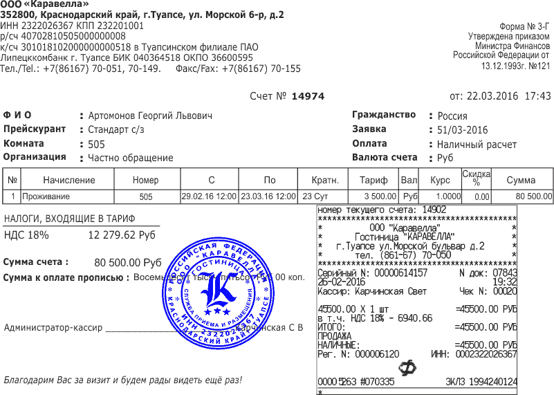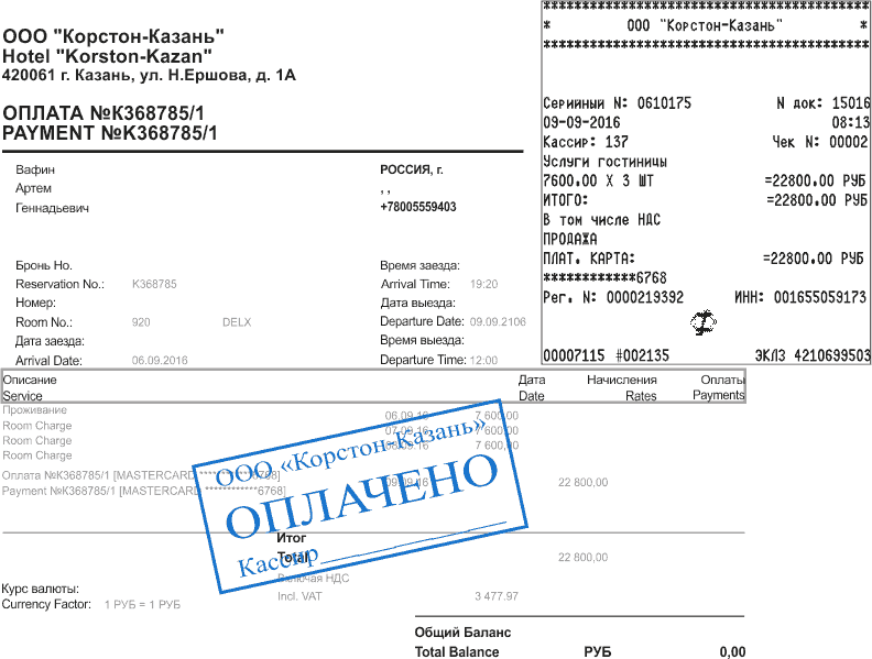 При строгой отчётности использование кассовых чеков выглядит следующим образом: • сотрудник выбирает место для заселения, бронирует номер; • в процессе заселения происходит оплата или согласуются будущие издержки; • для подтверждения прилагаются официальные чеки.