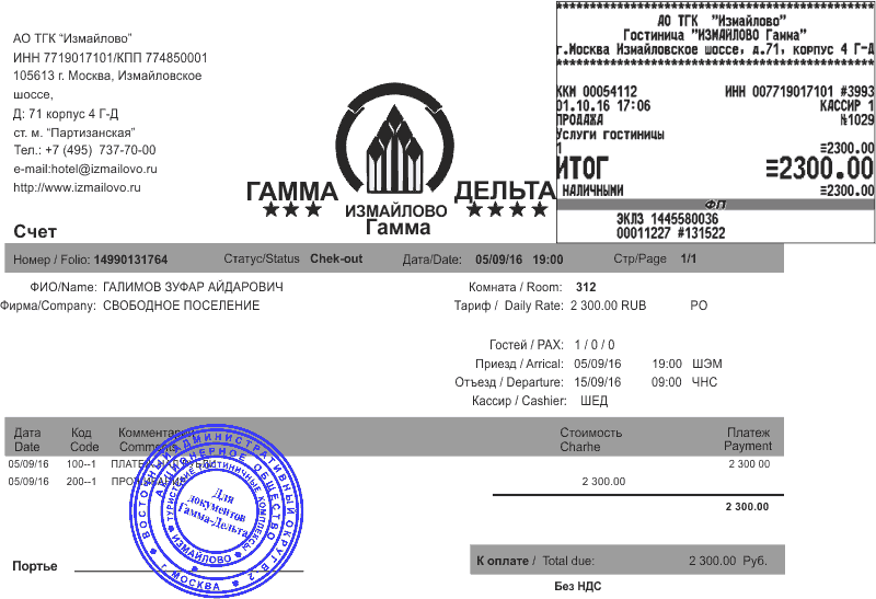 Стоимость квитанций – как купить гостиничные чеки с подтверждением в СПБ, Москве и других городах?