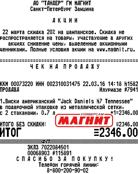 Так, например, чек магазина Магнит бывает необходим людям, находящимся в командировке. Если приобрести сам чек, но не делать покупку, то можно добиться компенсации полной суммы покупки у работодателя, потратив на приобретение чека сравнительно небольшие деньги. Такой возможностью пользуются многие люди. Продукты можно приобрести в более дешевом магазине и на меньшую сумму. Номер чека Ашан не имеет большого значения в таком случае, ведь его могут проверить только работники самого магазина, а на практике никто этого делать не будет.