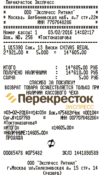 Если вам нужен продуктовый чек Перекресток или любого другого магазина, то обращайтесь в компанию «Действительные Чеки», где вы сможете заказать чек практически каждого крупного магазина или торговой точки. Это возможно благодаря большой базе данных, с которой берется вся необходимая информация. За счет такой базы гарантируется полное соответствие реальности поддельного чека, поэтому никто не сможет найти отличия.
