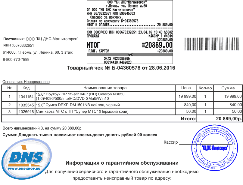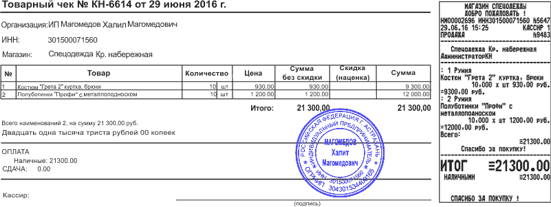 Товарный чек без кассового, приобретенный у нас, оригинален и не вызовет сомнений.
