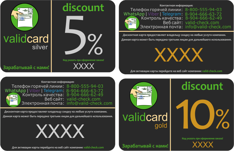 Дисконтные карты ValidCard действуют на все услуги компании ValidGroup и ее представителей по России и СНГ.
